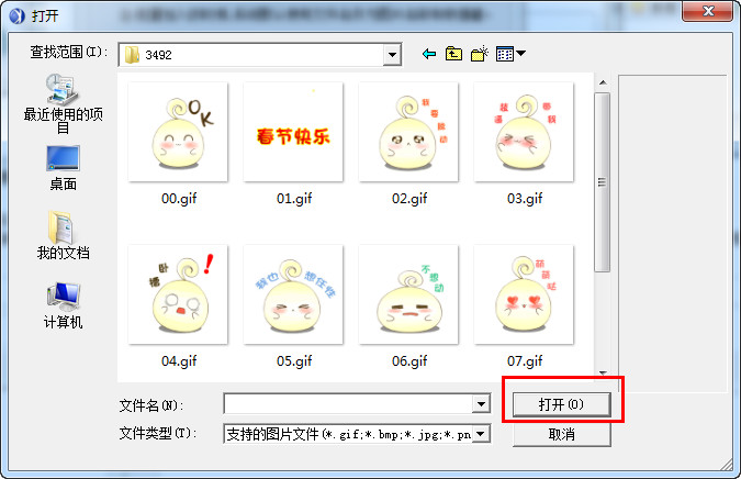 3、点击上面的导入按钮--找到之前存放下载好的腾讯通表情包