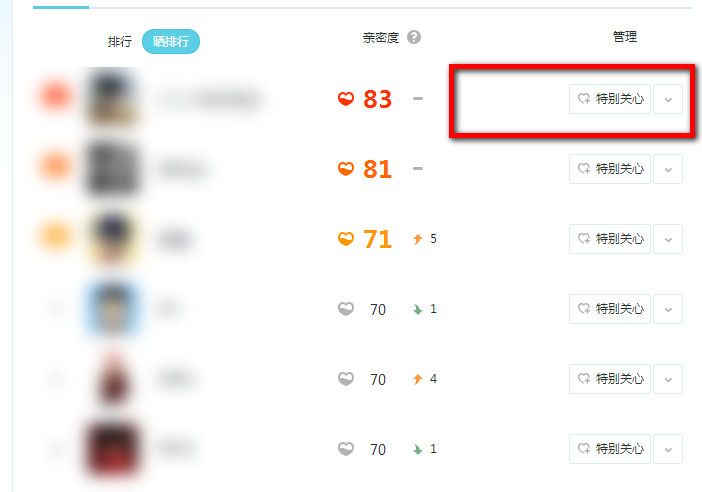 第二步:在好友列表里选择好友,然后右边就会有“特别关心”,选择一下就可以设置了