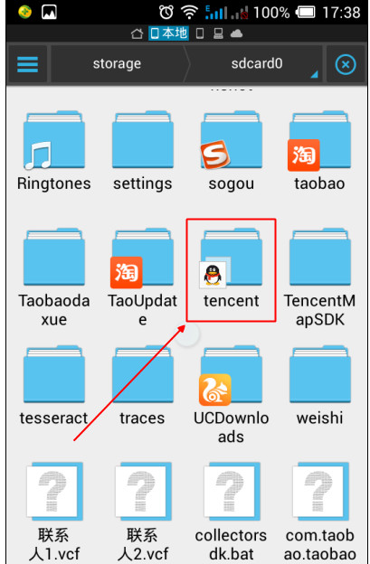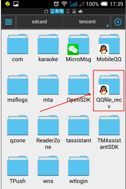 第四步:如果你要直接找群文件,首先打开你手机【文件管理器】找到一个名为【tencent】的文件夹。