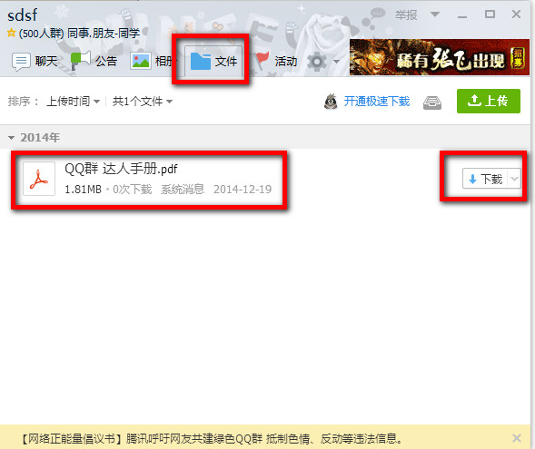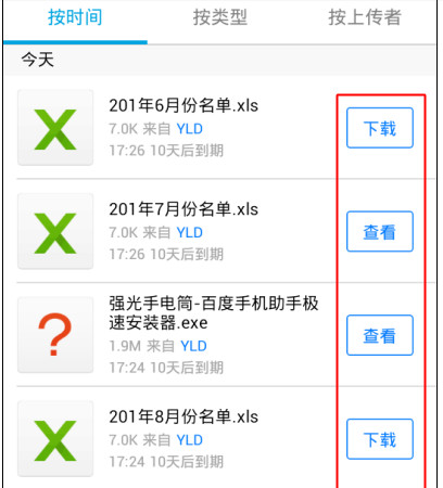 第三步:在群文件中,点击右边的【下载】按钮即可在线下载群文件。下载完成后会显示【查看】点击【查看】即可使用。
