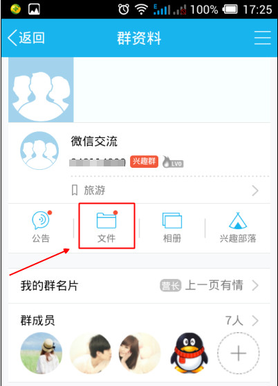 第二步:在这里有群资料什么的,然后你选择“群文件”