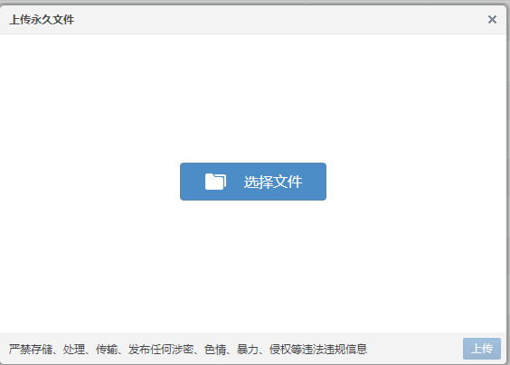 第三步:在左上方有个“上传永久性文件”图标,点击会有些下拉,根据自己的需要选择,选择好以后就会弹出选择文件的界面