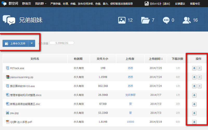 第二步:点击以后就可以看到你的或者你的伙伴上传的一些文件,这里有些下载的操作,你想要这些文件的话可以点击下载