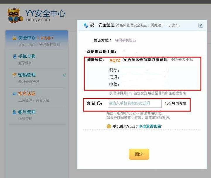 3、通过手机方式验证,编辑短信发送,获取手机的验证码,填入验证码。