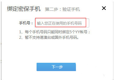 步骤七:在新出来的对话框中输入希望绑定的手机号。