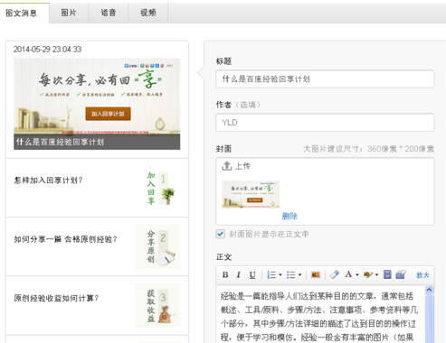 2、一般官方建议的是360*200,但在手机微信上显示的图片会被标题挡住一部分,所以图片最佳尺寸为200*200,或者宽、高相等不超过500为好。