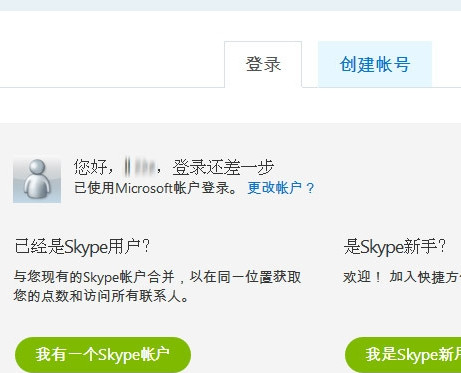 步骤五:注册成功后,跳转到首页,同样右上角可看到账号,在skype登录时可直接通过microsoft账号登录(skype上有登录入口)