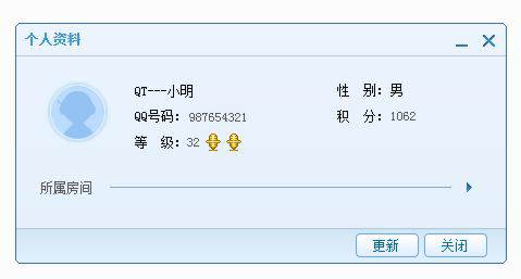 点击主面板右上角菜单中的个人设置子项,在个人设置窗口中对个人资料进行编辑,昵称目前支持最多24个英文字符,12个中文字符;如勾选不在QT语音中显示QQ号码,则QT语音其他用户无法看到您的QQ号码。