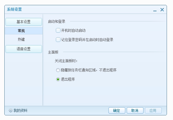 选择退出程序当点击主面板关闭按钮时,会直接关闭。