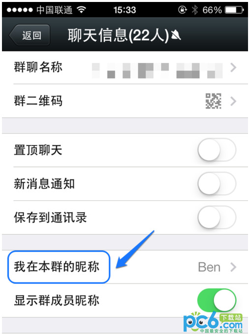 最后输入在这个微信群的昵称,点击“保存”按钮就可以了,如图所示