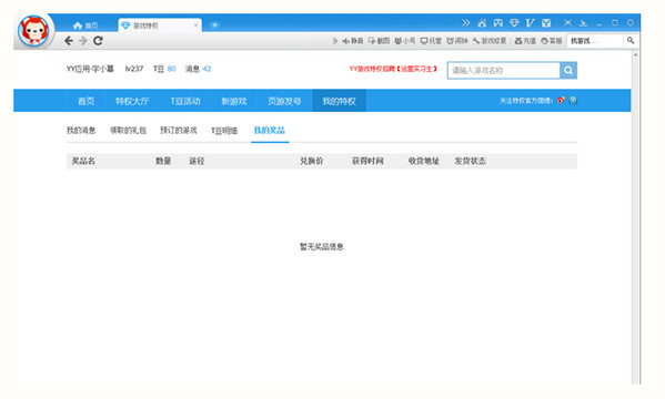 点击主面板钻石图标或者YY应用中的游戏特权图标进入。
