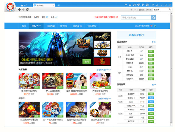 新上线的yy6.8版提供了全新的设计的UI界面,YY游戏特权中心也得到了改进,YY游戏特权将会让你的游戏角色变的更加强大,在畅享游戏时更加得心应手。但许多新手玩家对于游戏特权的使用还是一头雾水。那么下面的介绍将让你一目了然,小编带你快速玩转多玩YY游戏特权。
