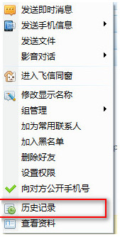 第三步:点击一下选中的这个好友,单击鼠标右键 会有一个菜单,在菜单上选择最后的那一个查看历史记录