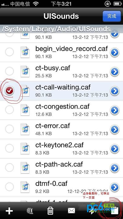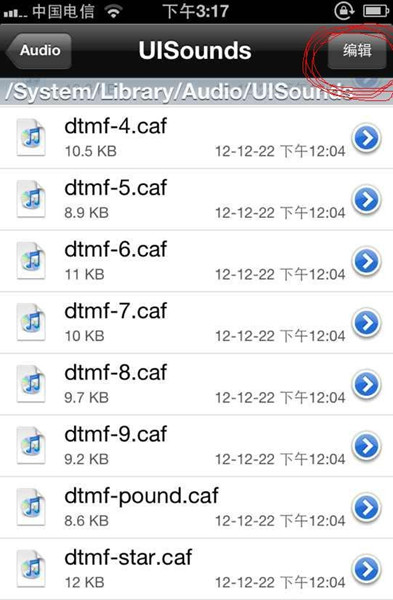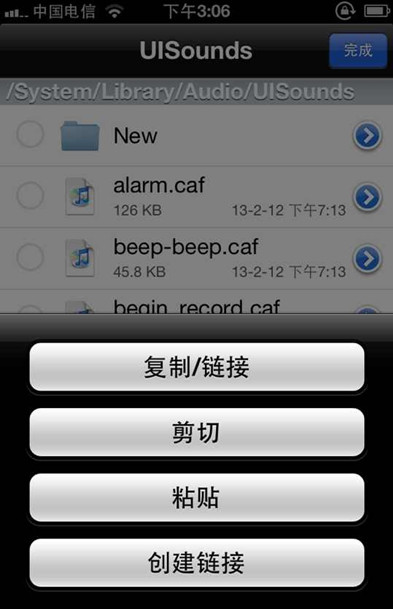 3、利用“ifile”软件到/System/Library/Audio/UISounds下找到你替换过的铃声