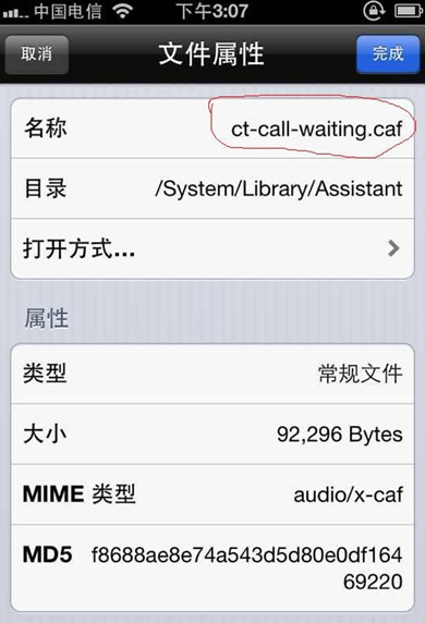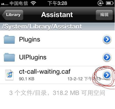 3、用上面的“助手软件”找:/var/mobile/Applications/*/MicroMessenger.app/这个路径,将in.caf文件替换在该目录下,重启完OK!