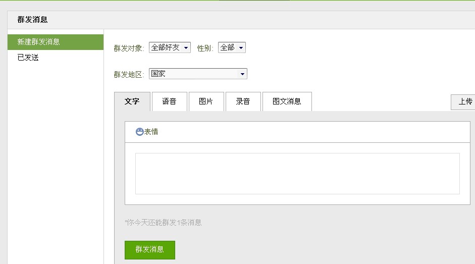 4可以绑定你的微信大号,通过大号发的信息可以用公众账号群发