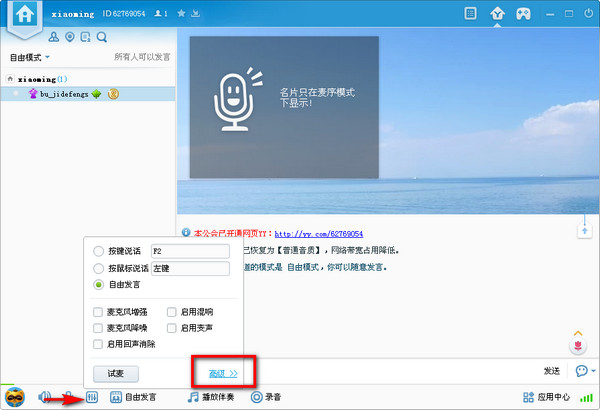 点击左下角的“调音台”按钮,选择“高级”进入语音设置。