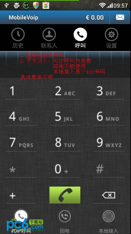 软件特点:需要3g或者wifi网络支持。这软件属于网络电话的一种。只不过是永久免费的 有不相信是免费的(可自行测试:飞行模式下开WIFI 拨号完全没问题) 注意:拨打所有手机号码前一定要加"+86",拨打座机则在号码前加"区号"就行。