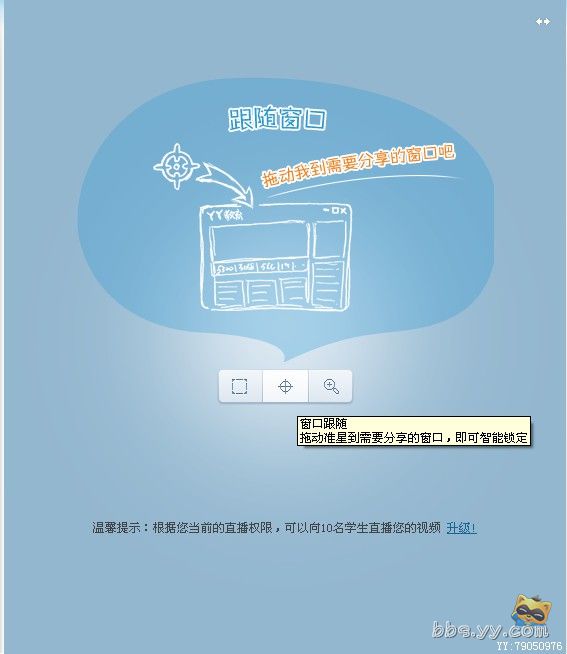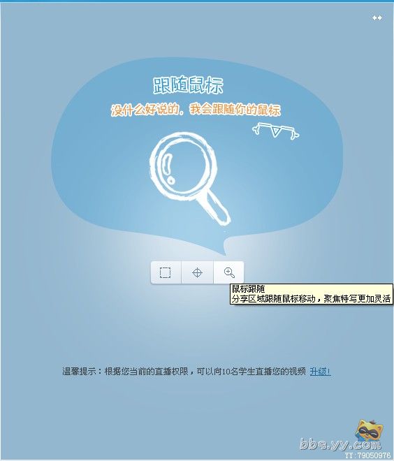 跟随鼠标功能,直播访问比较小,只是有一个正方形的访问。不可以随意调整