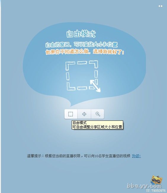 自由模式缺陷:虽然可以自由的变换直播范围,但是随着范围增大,字体就会模糊不清,使用的时候要注意。