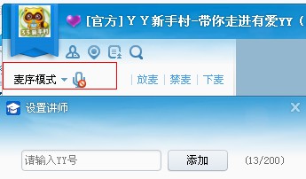 2.打开直播频道麦序模式-并且在YY教育工具箱添加权限