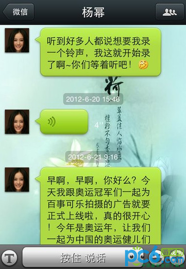 杨幂6月18日开通了官方微信,仅仅半天就吸引了20万粉丝加其好友,收到近51万的微信消息。微信见证了杨幂高涨的人气,也令她惊喜不已,她在自己的腾讯微博中写道:“正在听你们的留言呢,感动,感动。”和粉丝越来越热络的杨幂,她还不时“耍贫”,邀请粉丝在微信里“聊两毛钱的!”