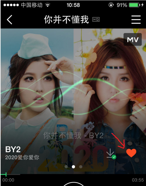 3、在安装手机APP后,也可以试听歌曲,发现喜欢的也可以直接标记为我喜欢,收藏歌曲,不过需要先登陆QQ号
