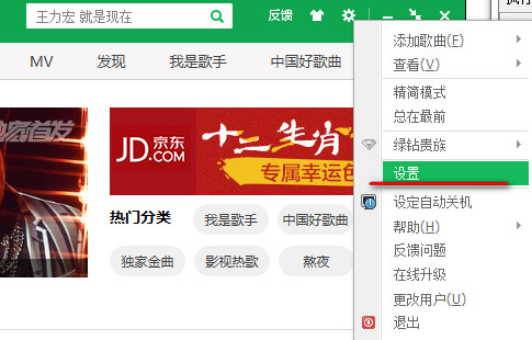 1、首先我们打开QQ音乐,点击右上角“主菜单”按钮选择“设置”
