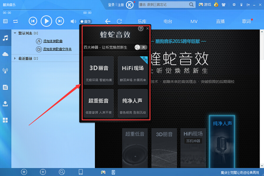 蝰蛇,音效,是什么,酷狗,在哪,设置,2015版,酷狗,