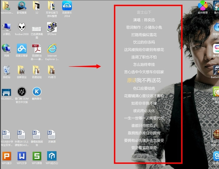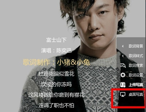 3、接着点击右边的“桌面写真”这一项,就可以看到歌词在桌面播放了