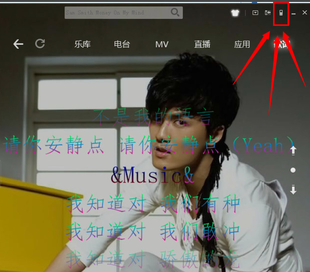 1、打开酷狗,在右上角可以看见一个像“遥控器”的图标,点击便可快速的切换到遥控器了。