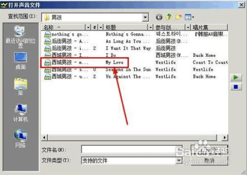 步骤二:浏览你的电脑,找到你编辑的这个音乐,然后双击这个音乐即可导入到软件中
