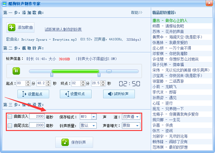 如果点击工具制作铃声没有弹出酷狗铃声制作专家的话,自已可以先下载酷狗铃声制作专家,和要制作铃声的歌曲,然后打开酷狗铃声制作专家,再添加刚下载的音乐,再接着第2步操作软件名称: 酷狗铃声制作专家v7.2.50.1绿色版