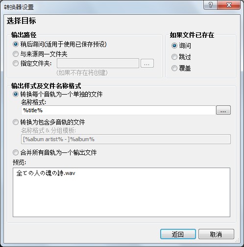 目标,转换后所在文件夹设定,文件名设定等等,如图:
