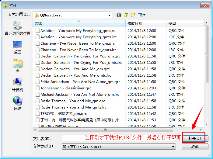 选择刚才下载好的LRC文件。
