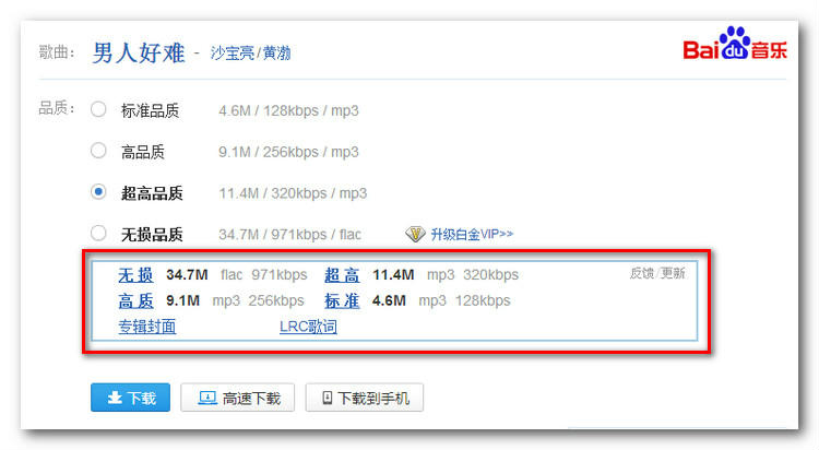 享受VIP会员后你即可下载百度音乐的所有无损、高品质音乐了: