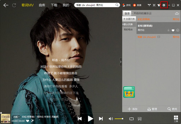 第二步:在酷我音乐盒的右上方找到“设置”的图标,然后点击“音乐工具”