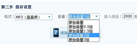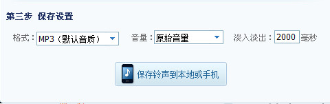 第七步:选择“保存设置”,这里你可以选择保存的格式,还可以调节音量的大小哦,选择好以后你保存到本地或者手机上,当然你不嫌麻烦你也可以先保存在电脑上再移到手机上也可以