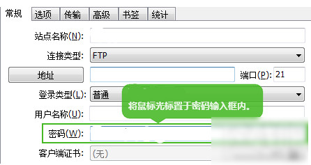 3、在菜单栏打开"站点管理器"或按快捷键F4,在站点管理器界面将鼠标光标放到密码输入框点击一下就能看到密码明文显示出来了。
