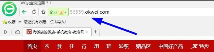 步骤二:浏览器地址栏输入 56559.okwei.com 进入网站 注册微店