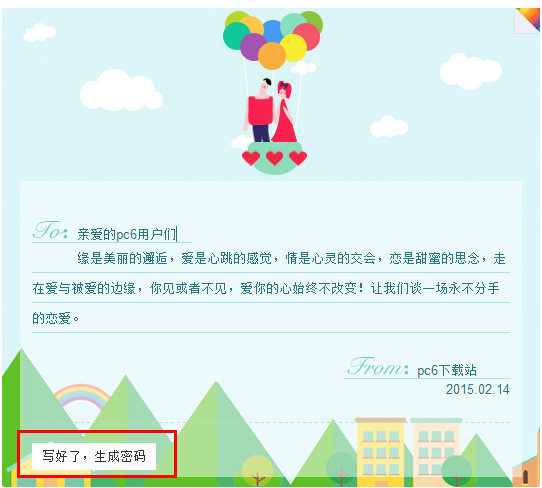 2、然后我们输入自己想说的话,输入收件人以及写信人,点击“写好了,生成密码”
