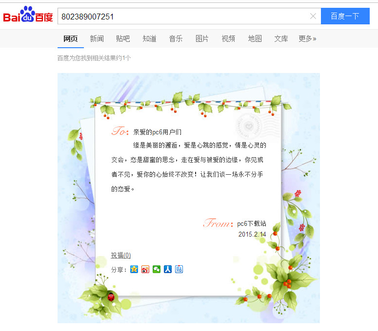 百度传情是百度搜索推出的一款电子卡。今天是情人节,相信很多朋友都要过节,大家有木有想过要为自己心爱的TA写一封情书呢?尤其在异地的朋友,暖心的问候也许是不能陪伴在身边最好的情人节礼物。单身的朋友们也可以写一封情书跟TA表白哦!