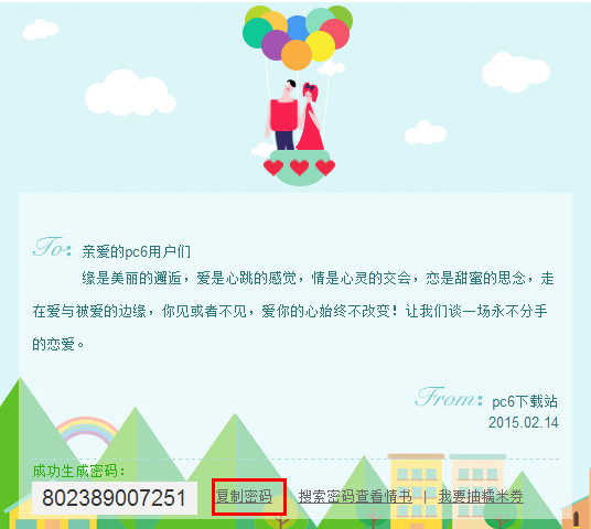 4、点击“复制密码”,然后将密码发给心爱的TA