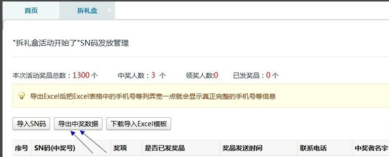 6、存后就可以测试了,点击SN码管理可以查看“用”户数据,支持Excel导出。