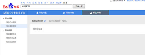 8、百度指数还有“我的指数”板块。你收藏过的指数会出现在这里。如果你有购买记录并添加新词,都会出现在“我的指数”上面