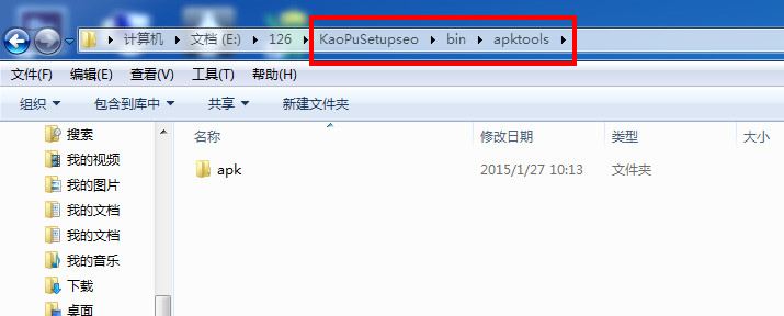 2、然后大家找到下面小编图上的文件夹这条路径,找到apktools这个文件夹