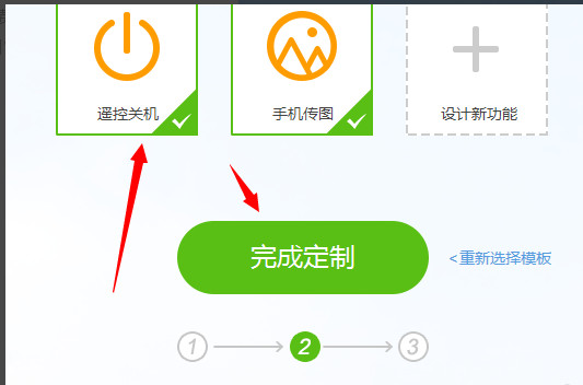 3、点击“编辑模版”按钮开始编辑,选择“遥控关机”选项,然后点击“完成定制”按钮完成遥控关机的定制。