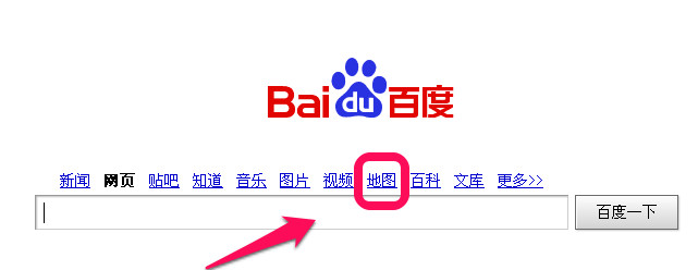 1、首先,我们打开百度首页,点击搜索框上方的地图