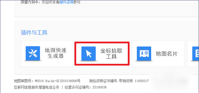 2、进入后,拉到最下面,在【插件与工具】,选择【坐标拾取工具】