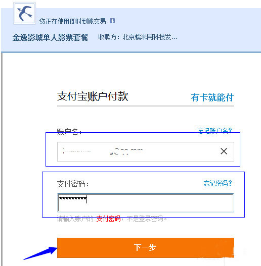 6、自动跳转到支付宝的支付中心。填入账号和支付密码,确定支付。